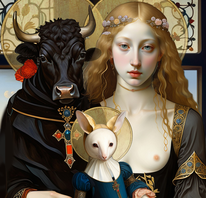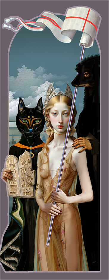 I continue to reflect on the idea of Transgression, and specifically the seemingly archaic “sin” of Blasphemy. For example: in today’s world what would “count” as blasphemy? I asked Chat-GPT for examples and the response seemed surprisingly tepid. “Saying something like ‘God Doesn’t Care About People.'” OK right . . . I think I can do better than that! Above are two digital sketches on the theme of Blasphemy/Transgression. Left: Two Girls Breaking the Ten Commandments in a Rose Garden; Right: Two Figures Blaspheming on Their Way to a Masquerade Ball.